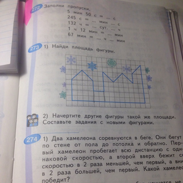 для подсчета площади необходимо подсчитать количество квадратиков, там где треугольнички, то два треугольничка это они квадратик