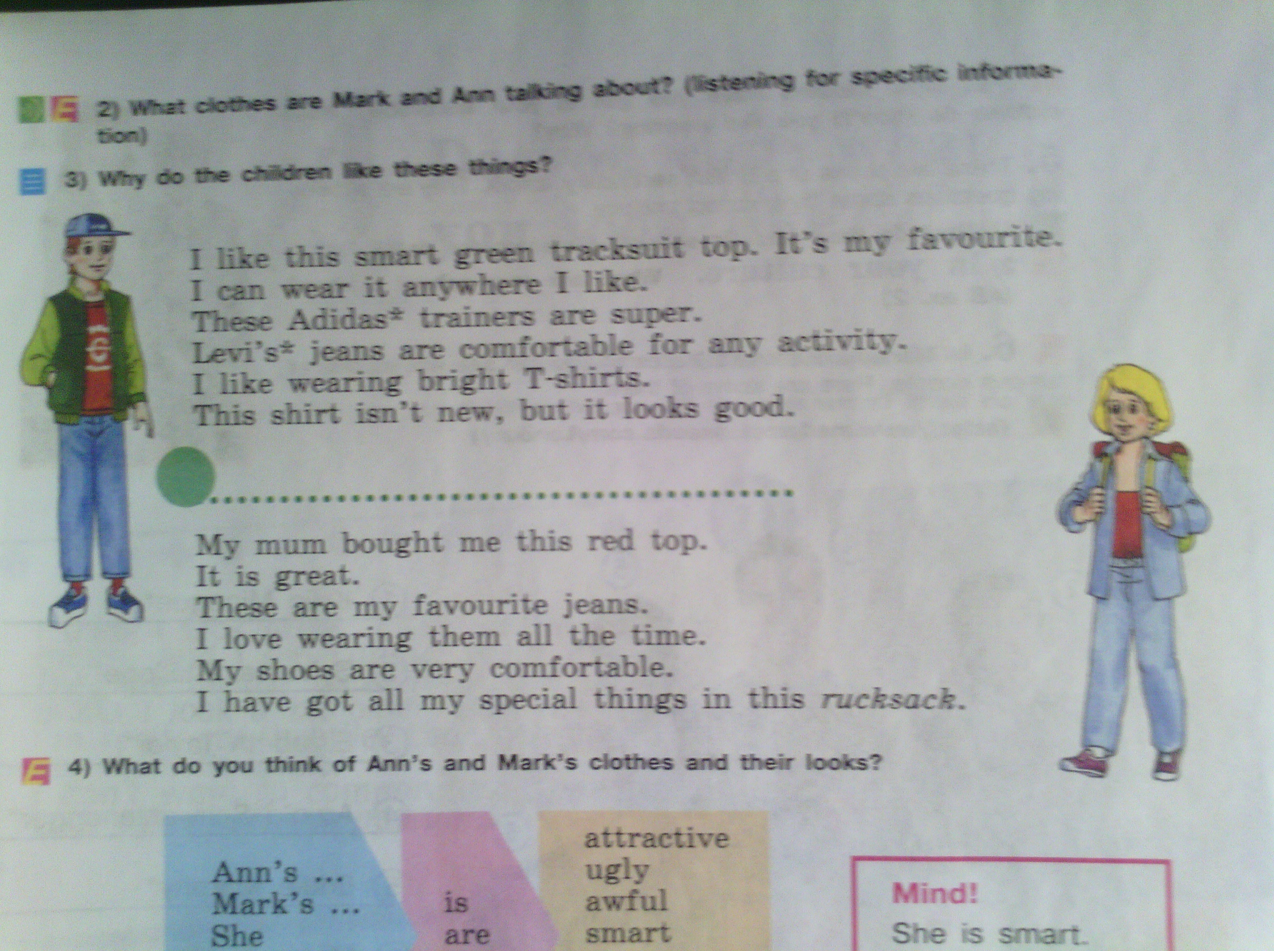 Моя мама купила мне это т красный топ.Это здорово.Это мои любимые джинсы.Я люблю носить их все время.Моя обувь очень удобная.Все мои специальные вещи в этом рюкзаке.
