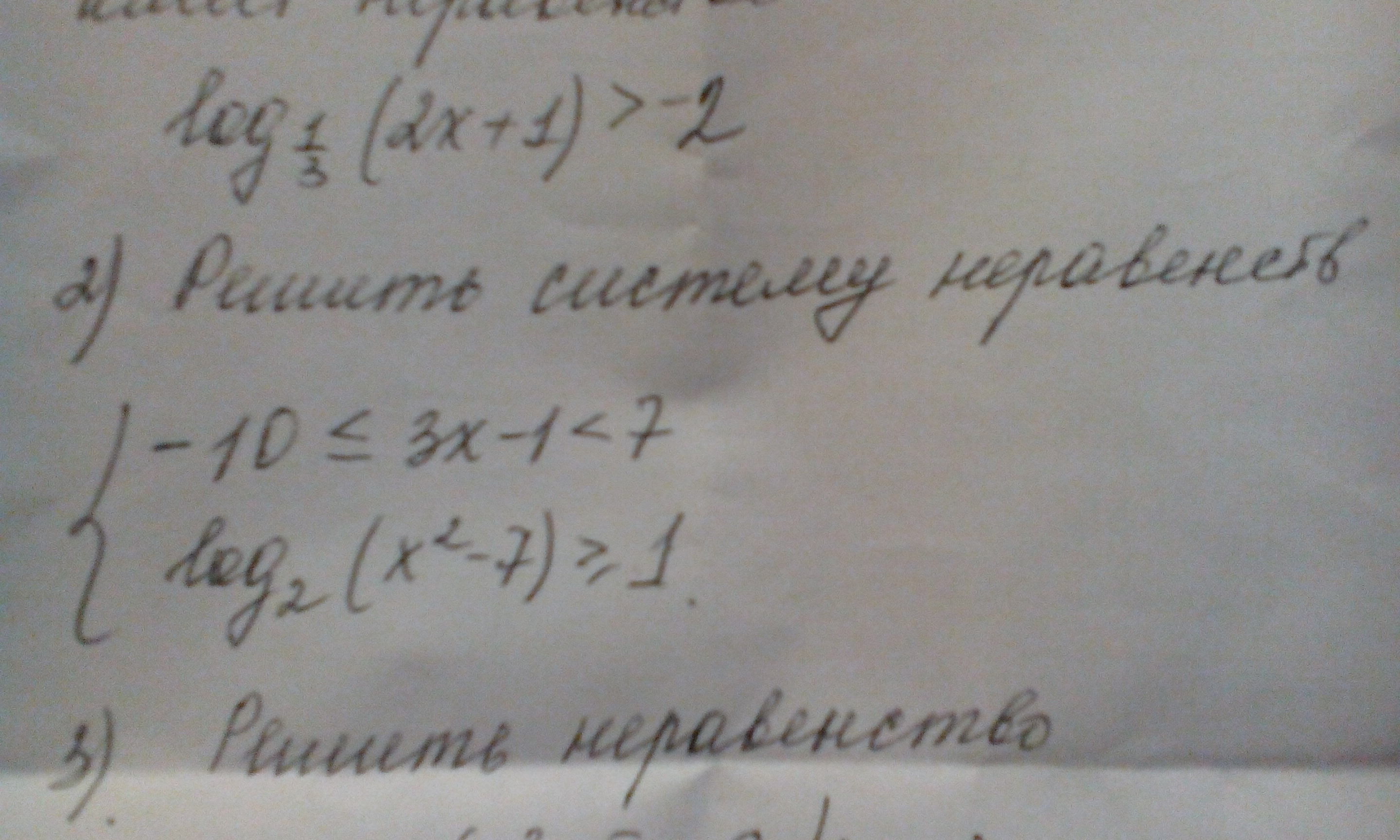 { -10 +1 ≤ 3x <7 +1 ; Log_2 (x² -7 ) ≥Log_2 (2) . ⇔