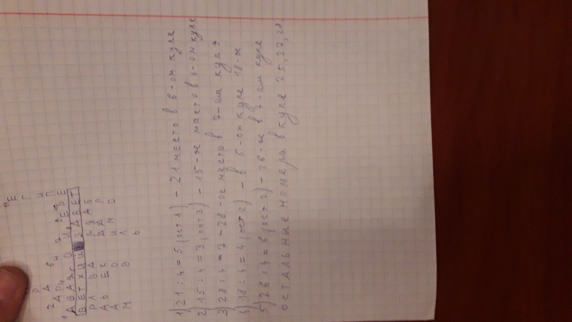 в вагоне поезда 36 мест по 4 места в каждом купе определитель номер купе в котором находится место 21 место 15 - 28 ST18i Укажите номера остальных мест купе в котором находится место 26