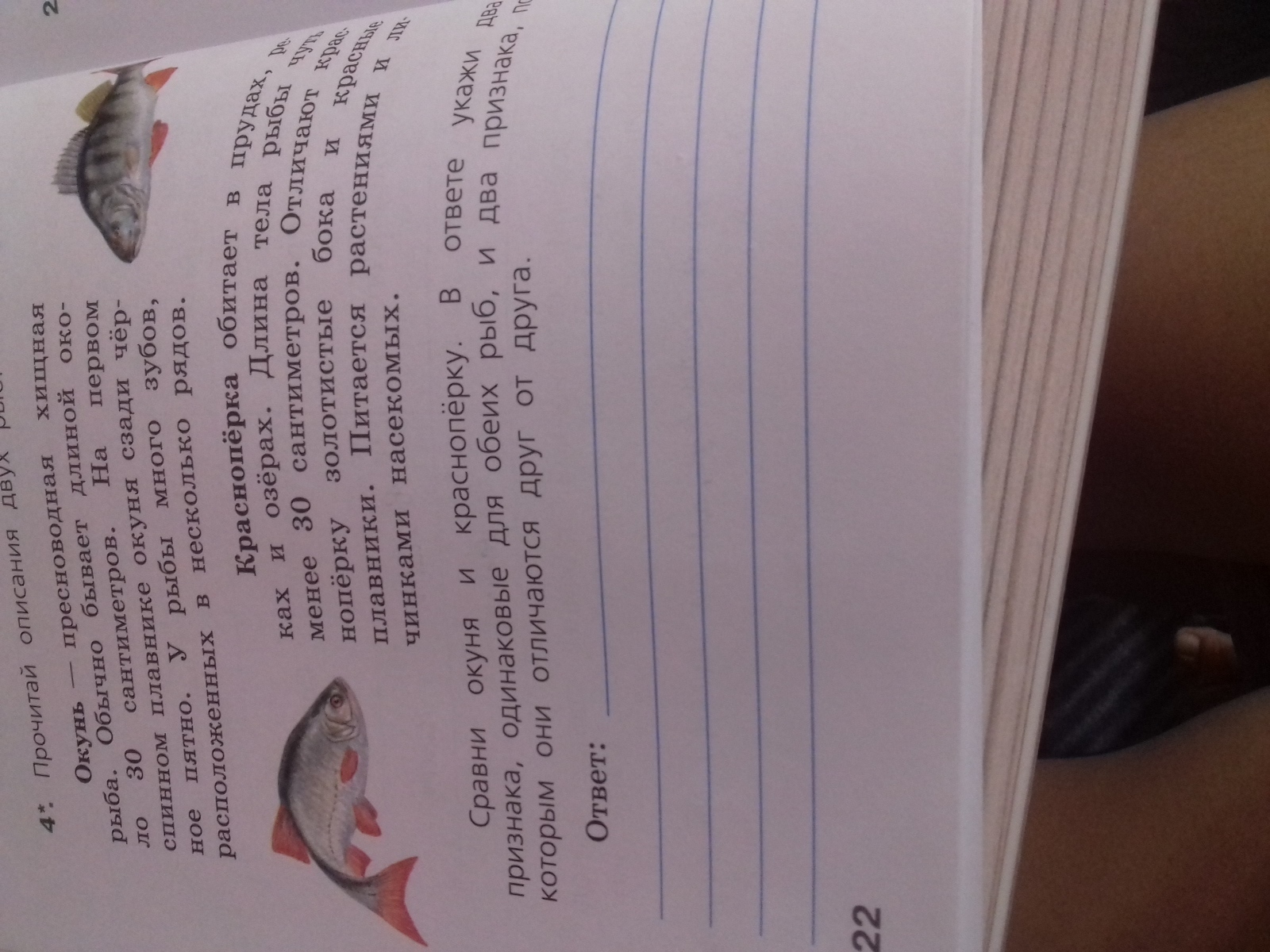 Сравни окуня и краснапёрку . В ответе укажет два признака одинаковые для обеих рыб , и два признака , по каторым они отличаются друг от друга.