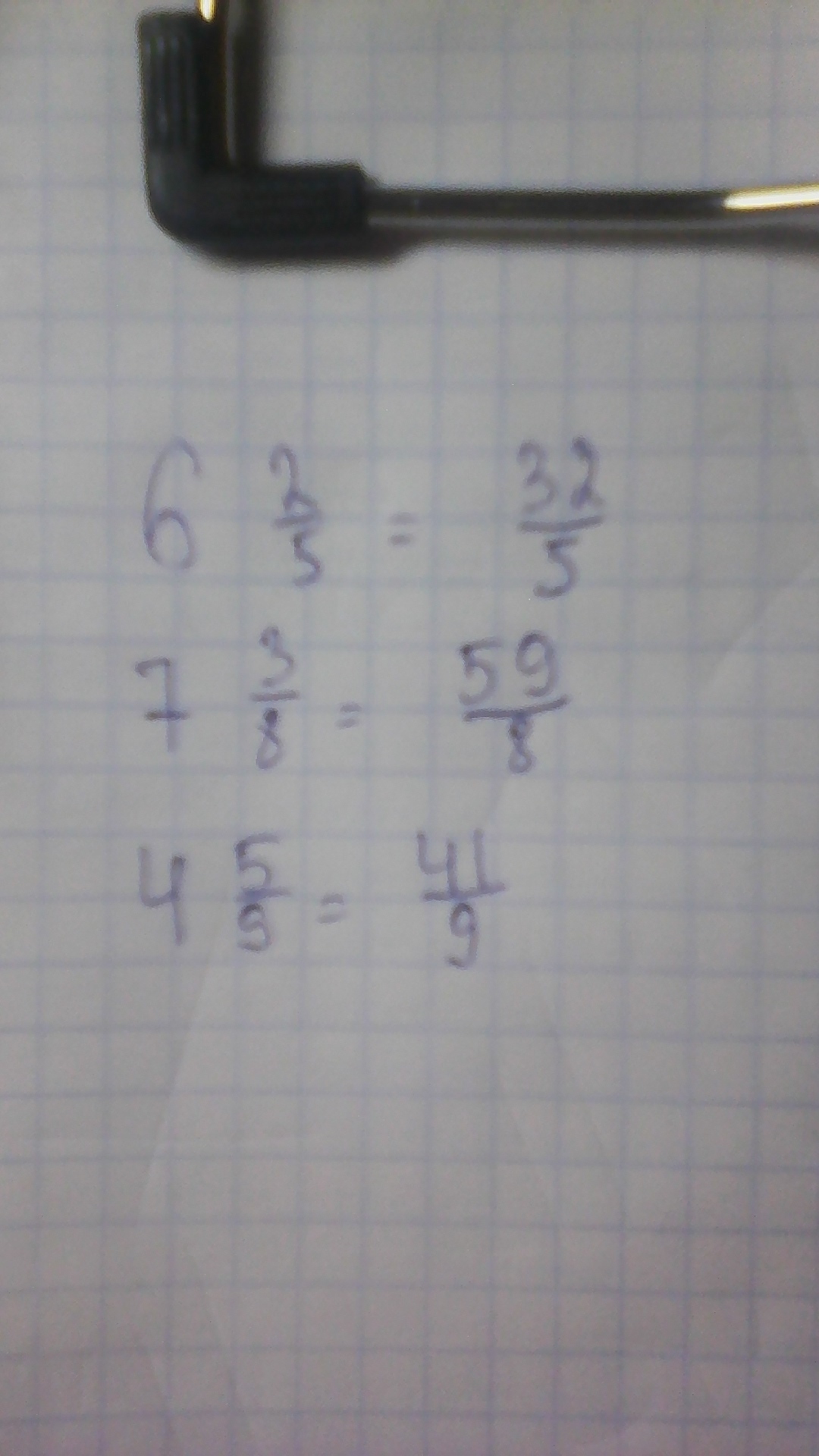 запишите смешанное число в виде неправильной дроби 6 целых 2 пятых,7 целых 3 восьмых 4 целых 5 девятых