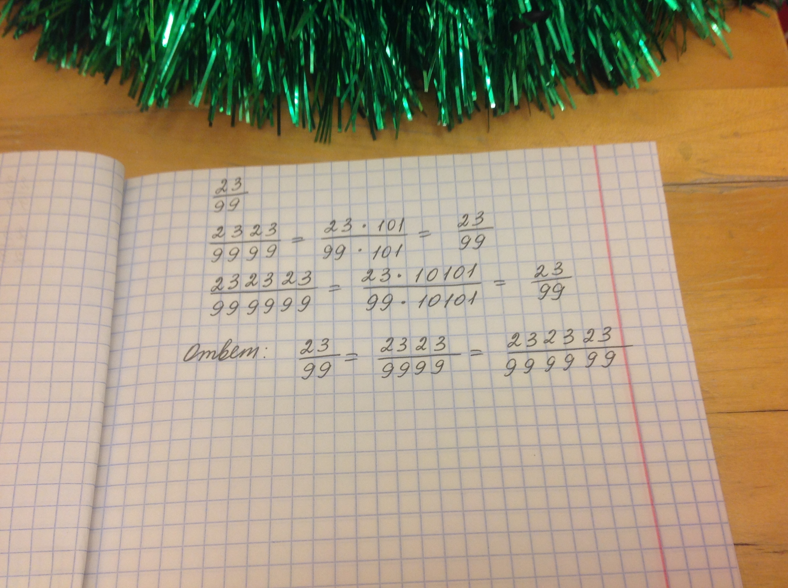 (23*10101)/(99*10101)=23/99
