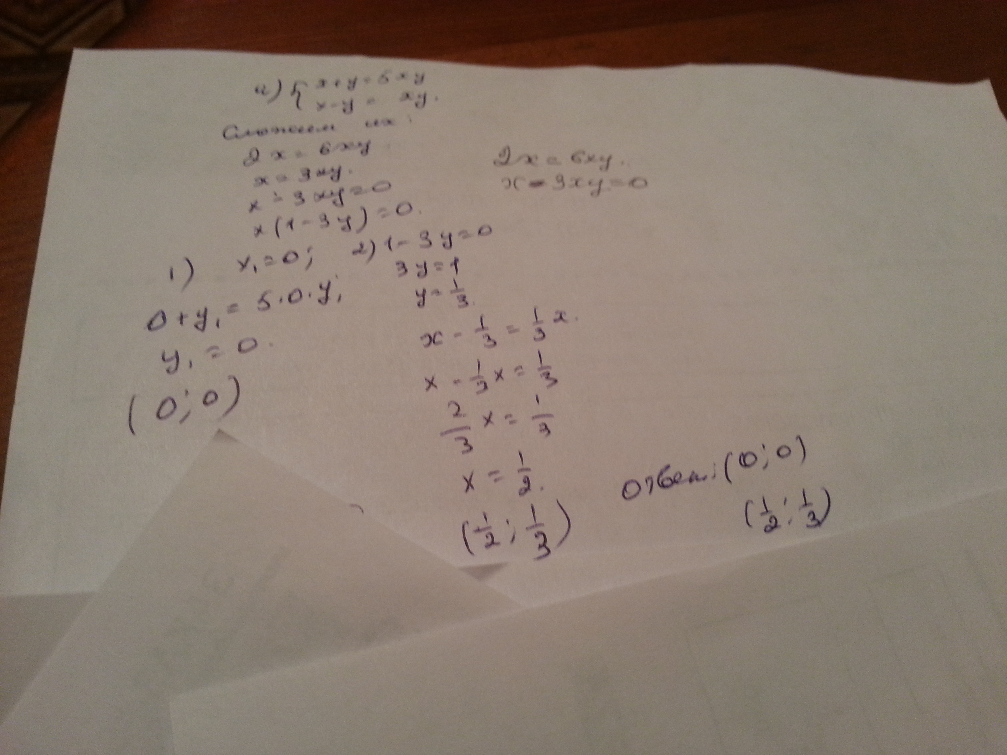 Посмотрите.х=3ху. Х-3ху=0.х (1-3у)=0.отсюда х=0 и 3у=1.почему то оба ошиблись (