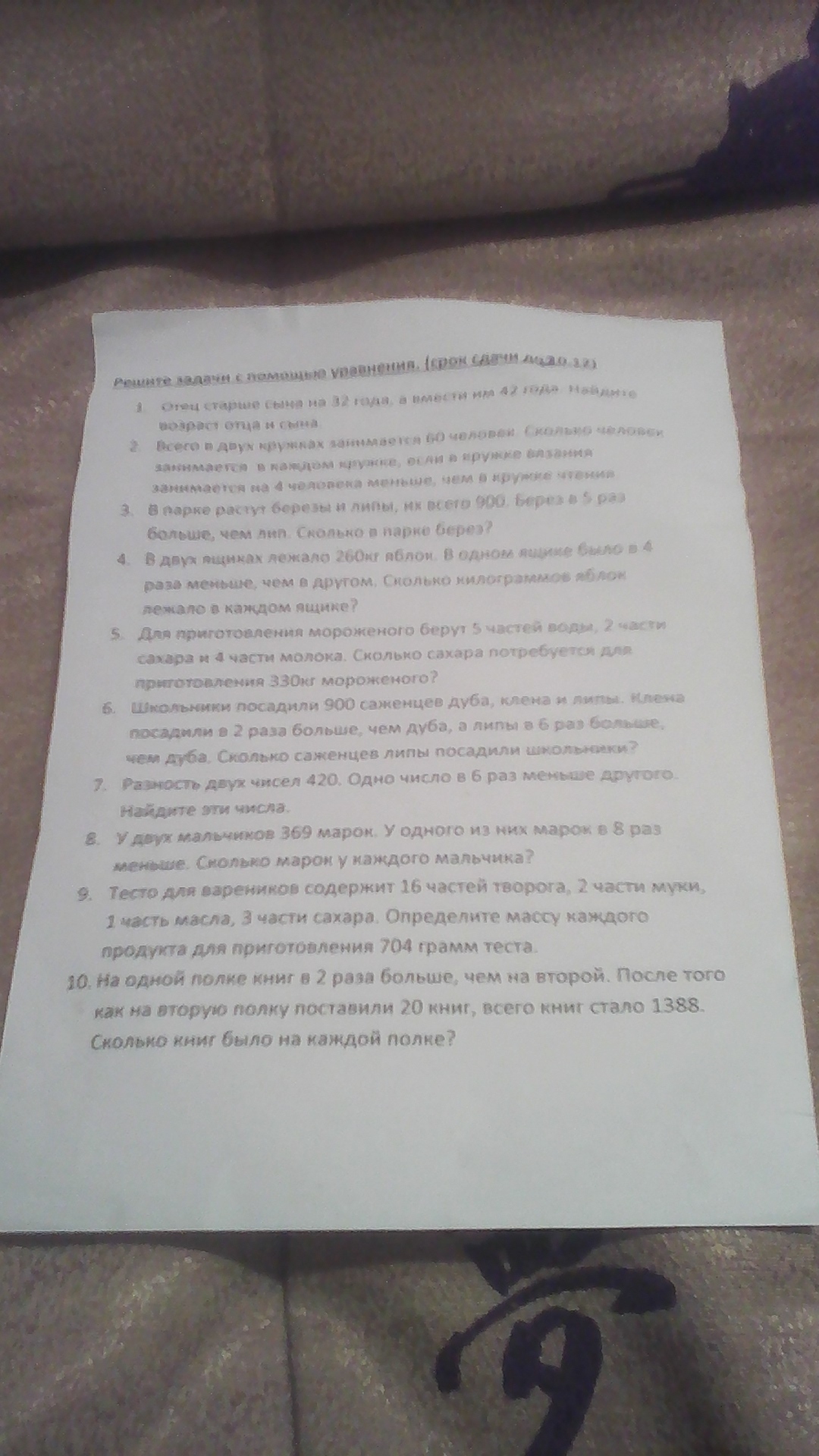 решите урвнением плиз очень нужно сдесь 10 задач только УРАВНЕНИЕМ
