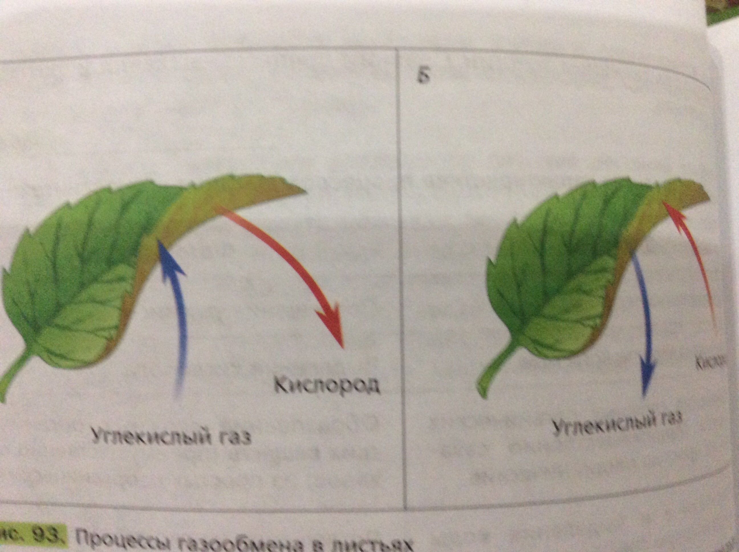 Внимательно рассмотрите рисунок 93. Определите, какой процесс показан на рисунке слева (а) и какой - справа (б). Сравните их и укажите самое существенное различие между изображёнными процессами. Свои выводы запишите в рабочую тетрадь и представьте в виде схемы процесс дыхания растения.