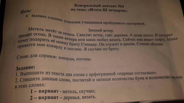 трещит и любит к первому заданию .вот второе задание. вариант 1 -метель -5 звуков 6 букв,скучаю-7 звуков 6 букв. 2 вариант- деревья 7 звуков и 7 букв.всё я 4класс учусь на 5 по всем предметам кроме английского языка там у меня 4.