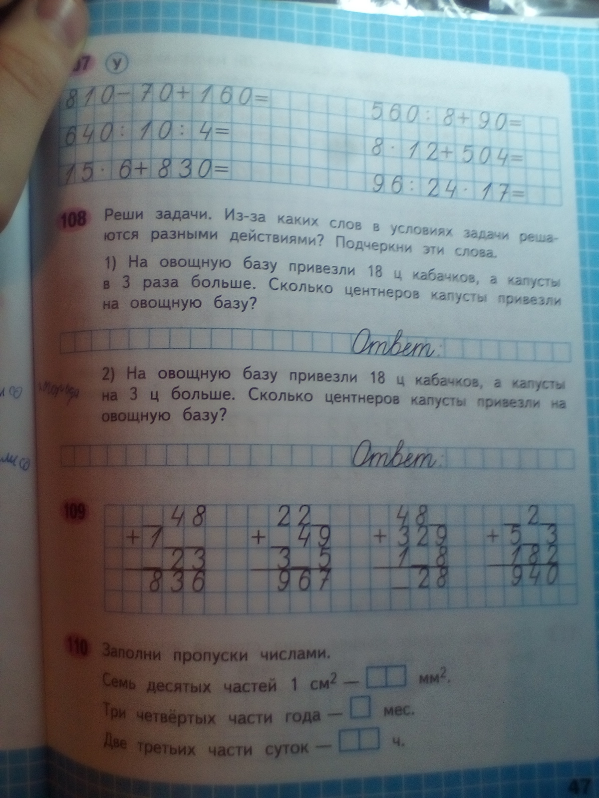 18*3=54 (ц.капусты привезли на склад)