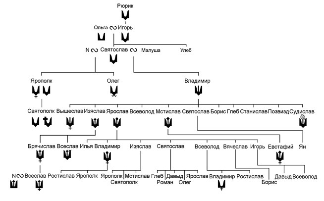 Создайте родословное (генеологическое) дерево от Рюрика до черниговского князя Олега Святославича. Заранее спасибо!