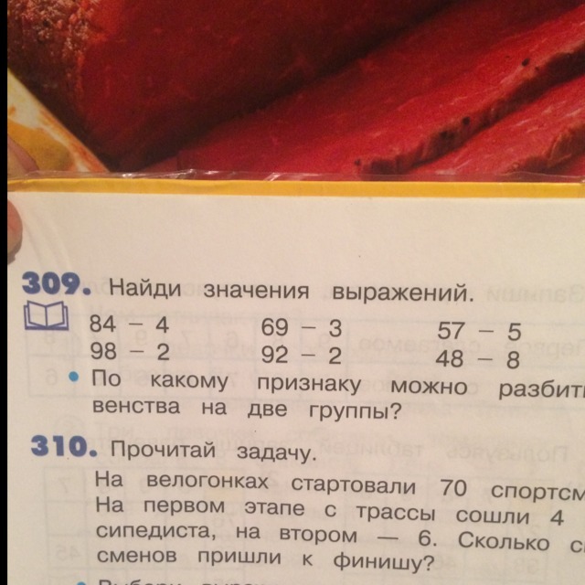 Найди значения выражений по какому признаку можно разбить равенства на две группы 309