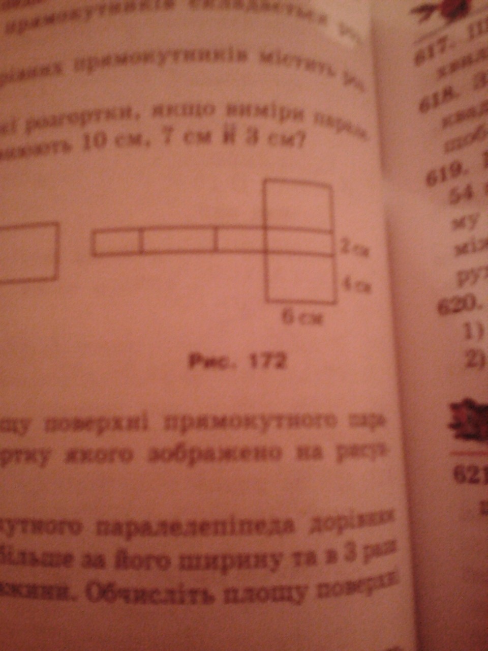 обчисліть площу поверхні прямокутного паралелепіпеда, розгортку якого зображено на рисунку 172.