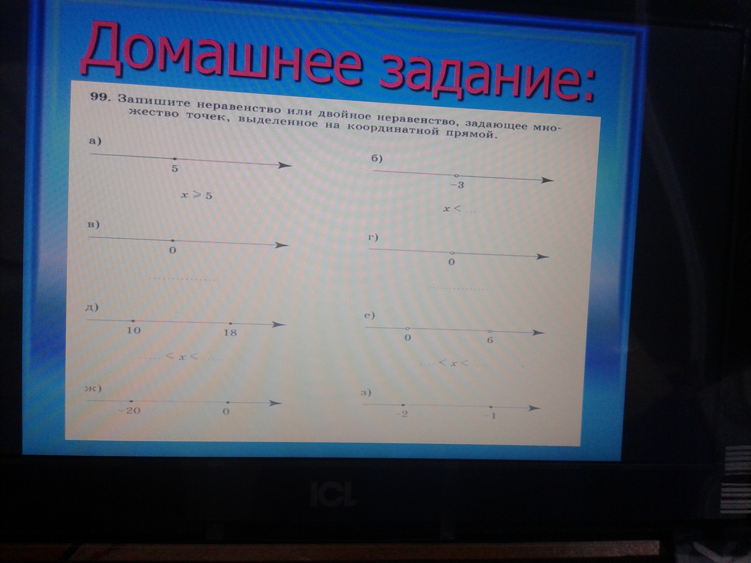 Там написано: запишите неравенство или двойное неравенство задающее множество точек,выделенное на координатной прямой