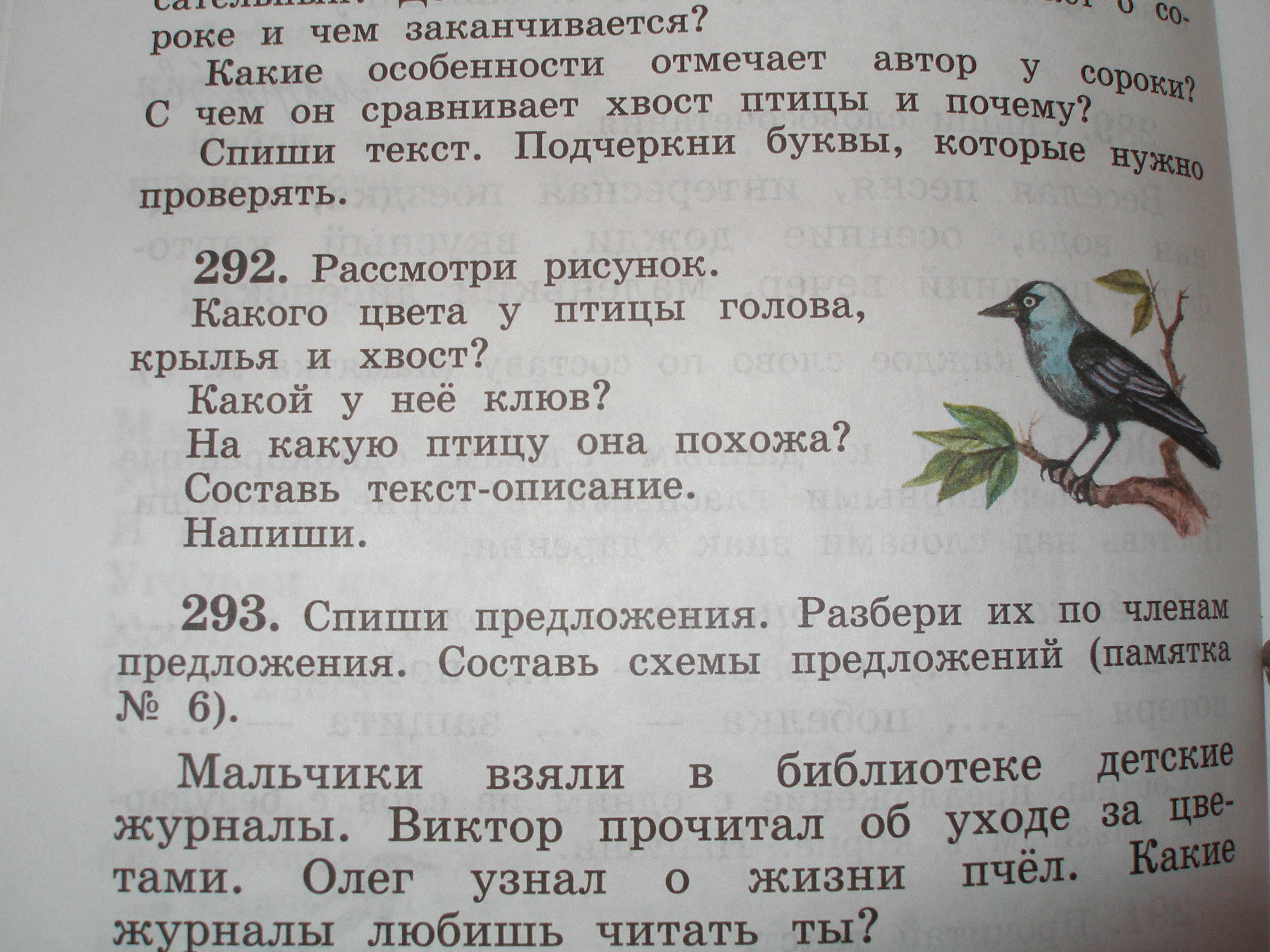 Перед нами птица. У нее черные голова, крылья и хвост. Клюв у птички прямой, тёмно-жёлтого цвета. Тело у печужки серое, небольшого размера. Крылья красивые, будто резные. Голова, словно одета в шапку. Лапки у нее маленьки, тонки, слабые. По всем признакам, мы можем предположить, что это галка