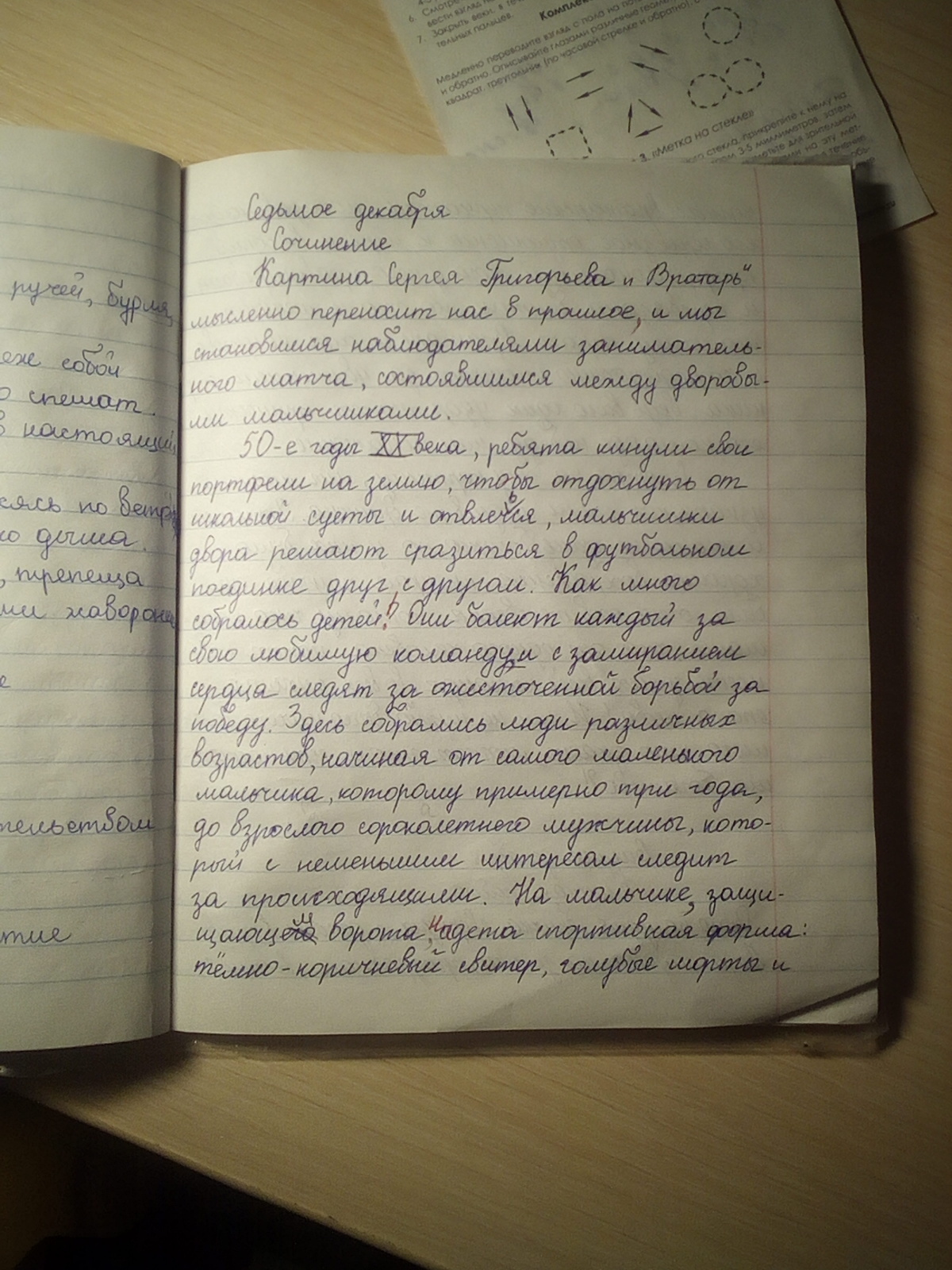 продолжение: и черные вратарские перчатки показыввющие его серьезное отношение к игре и высокий профессионализм, ногау него перевязанна бинтом но это не мешает ему играть . Вратарь стоит на готове, ведь всего 1удар может принести его команде победу или поражение.