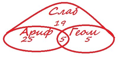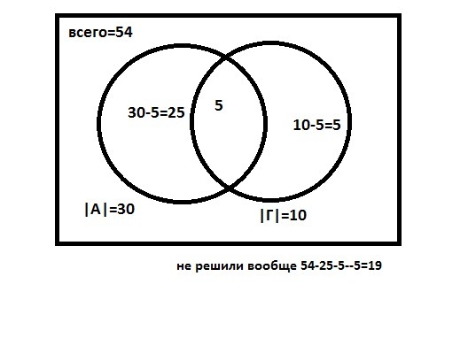 4) И не решили - 54 - 35 = 19 - Множество С - "слабаков".