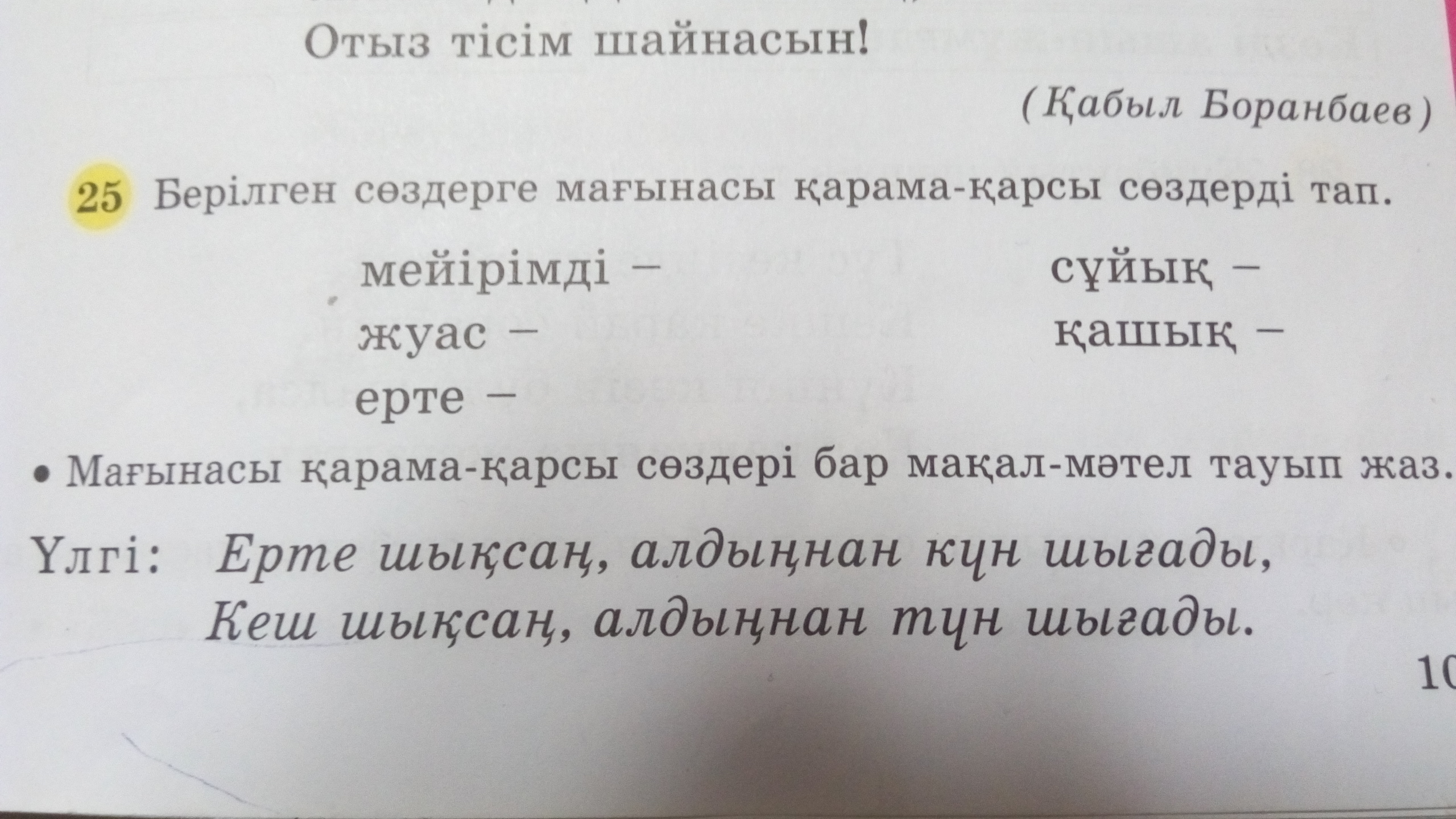 ерте шиксан,алдыннан кун шыгады,кеш шиксан алдннан тун шыгады