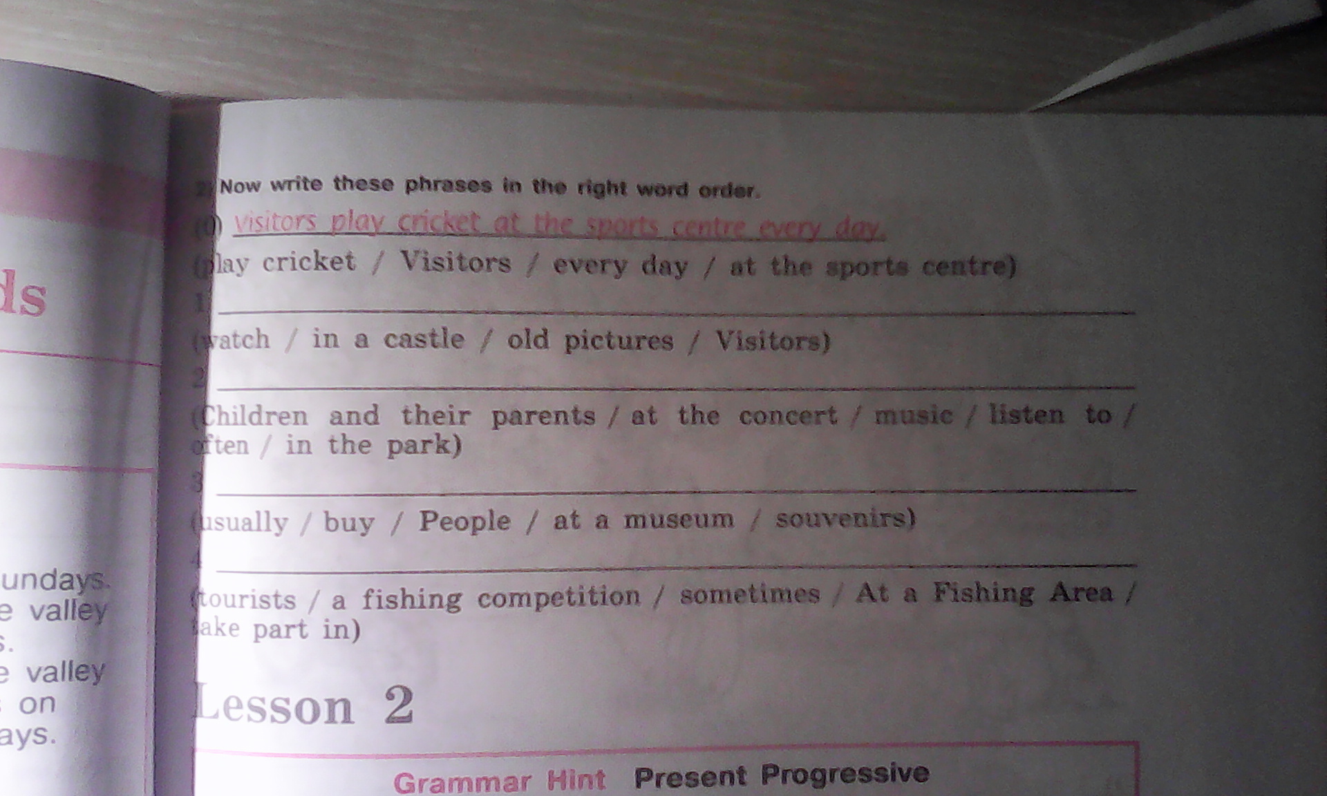 1. Visitors watch old pictures in the castle