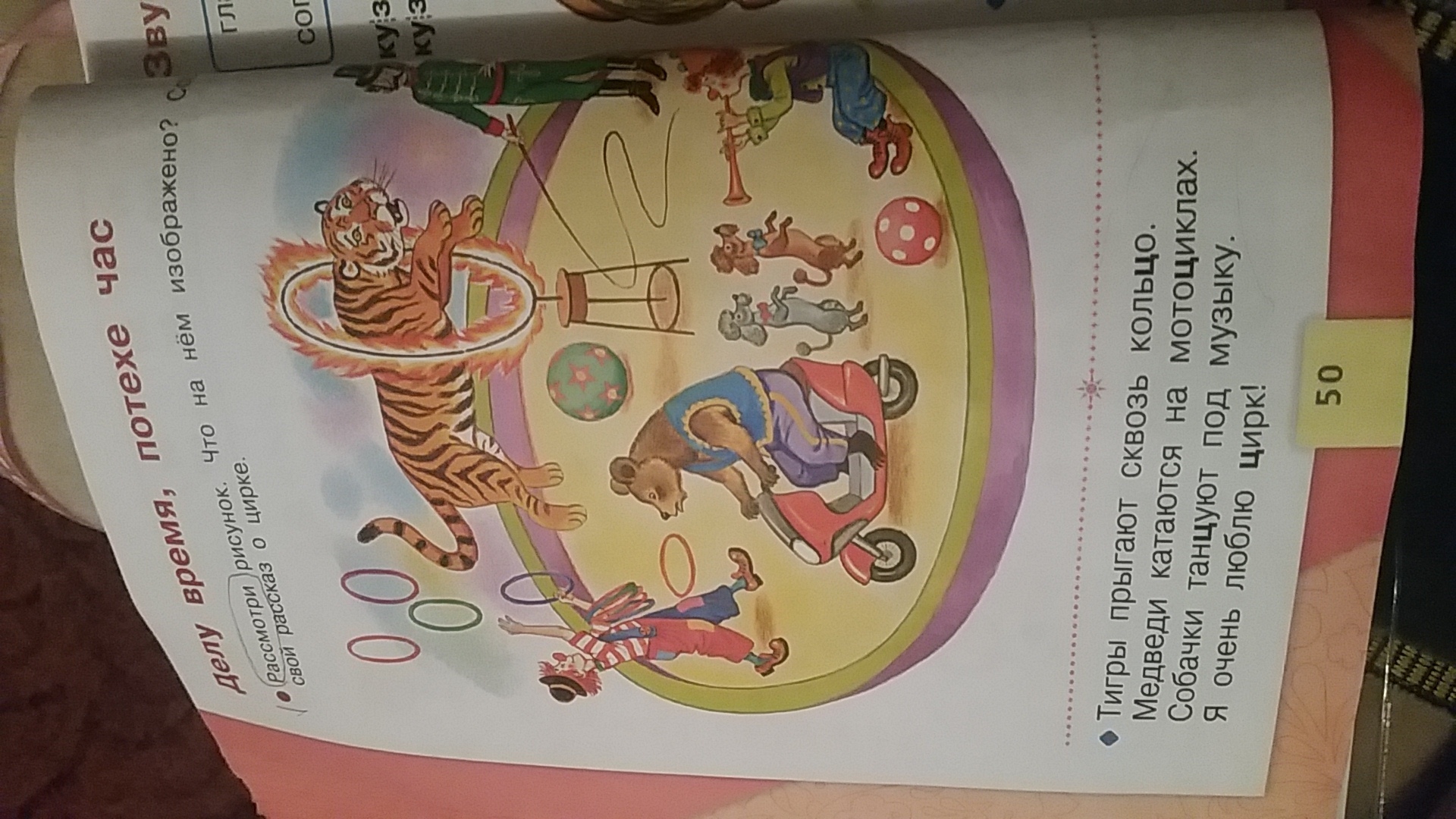 на ресунке изображен тигр который прыгает через огненный обруч . Медведь который ездиет на транспорте. Собаки танцуют под музыку . Мне очень понравилось в цирке было весело!