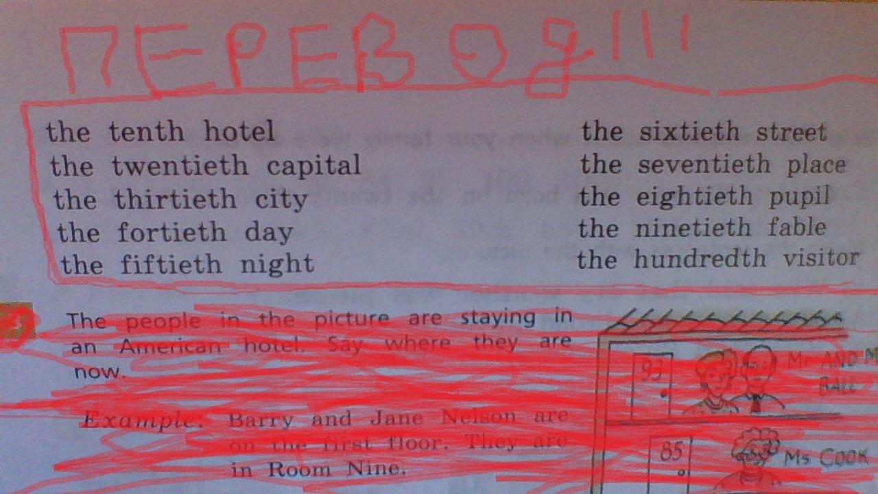 шестнадцатая улица, семнадцатое место, восемнадцатый ученик, девятнадцатая басня, сотый посетитель.