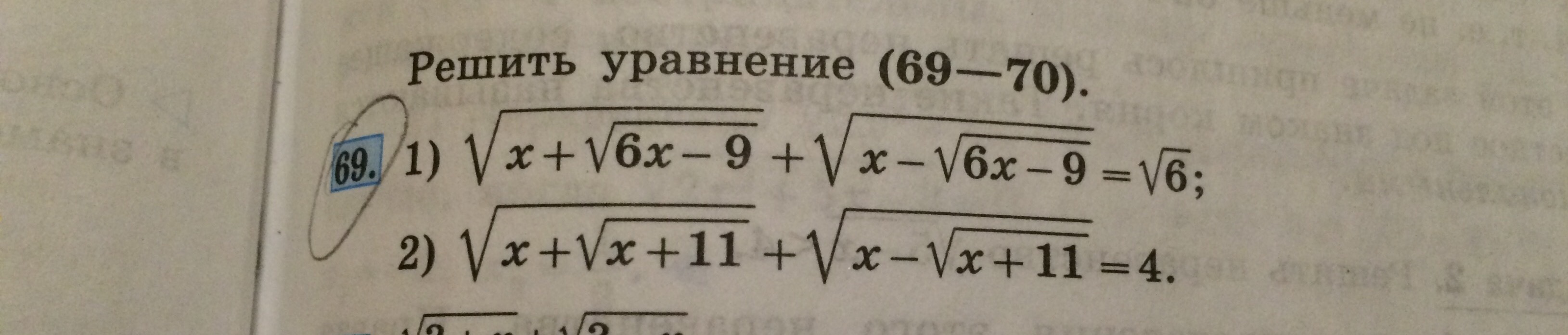 решение. Ну, а дальше решаем. Возводим в квадрат.