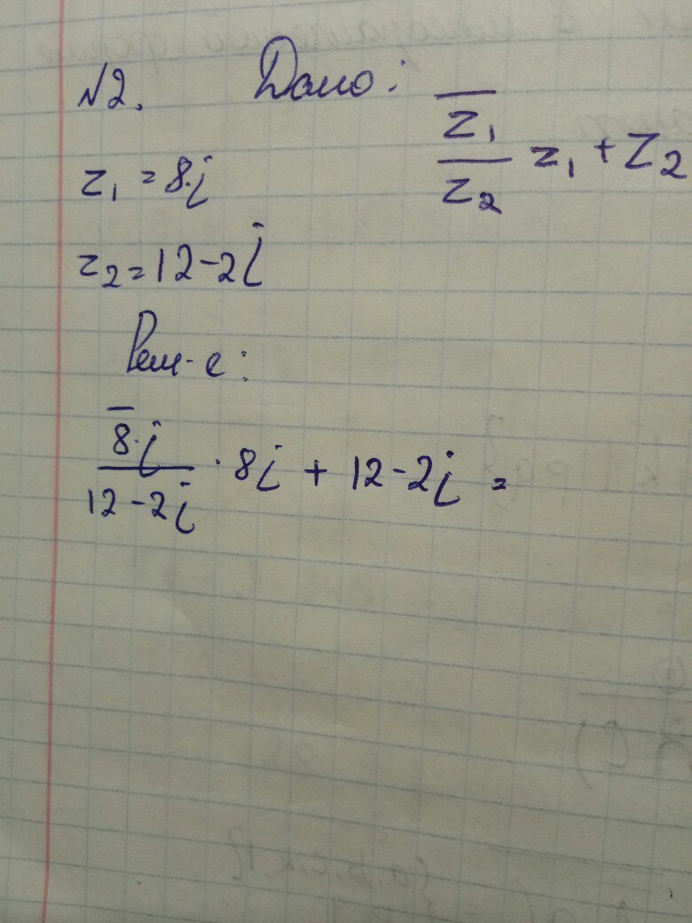z_1=8i; ,; ; z_2=12-2i; ,; ; overline {z_1}=-8i\\ frac{overline {z_1}}{z_2}cdot z_1+z_2= frac{-8i, cdot , 8i}{12-2i}  +12-2i= frac{-64i^2cdot (12+2i)}{(12-2i)(12+2i)}+12-2i=\\=frac{64(12+2i)}{144-4i^2} +12-2i= frac{128(6+i)}{144+4}+12-2i= frac{128(6+i)}{148} +12-2i=\\= frac{32(6+i)}{37} +12-2i= frac{192}{37} + frac{32}{37}i+12-2i= frac{636}{37} -frac{42}{37}  i