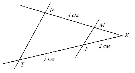 Тогда ∆KMP~∆KNT - по I признаку, из подобия следует, что