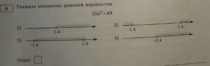 25(x^2-1.4)(x^2 +1.4)>0, получаем x∈(-∞;1.4)∪(1.4;+∞), ответ (3)
