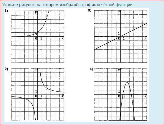 2) и 3), тк по определению нечетной функции f(-x)= -f(x), если D(f) симметрично относительно 0 и х и - х принадлежат D(f), тогда очевидно, что график нечетной функции симметричен относительно начала координат