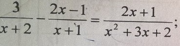 1) Приведи к общему знаменателю. В первой дроби умножь на x+1, а вторую на x+2. В итоге будет знаменатель как в третьей.
