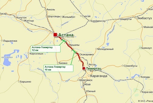 Темиртау расположен к юго-востоку от Астаны.