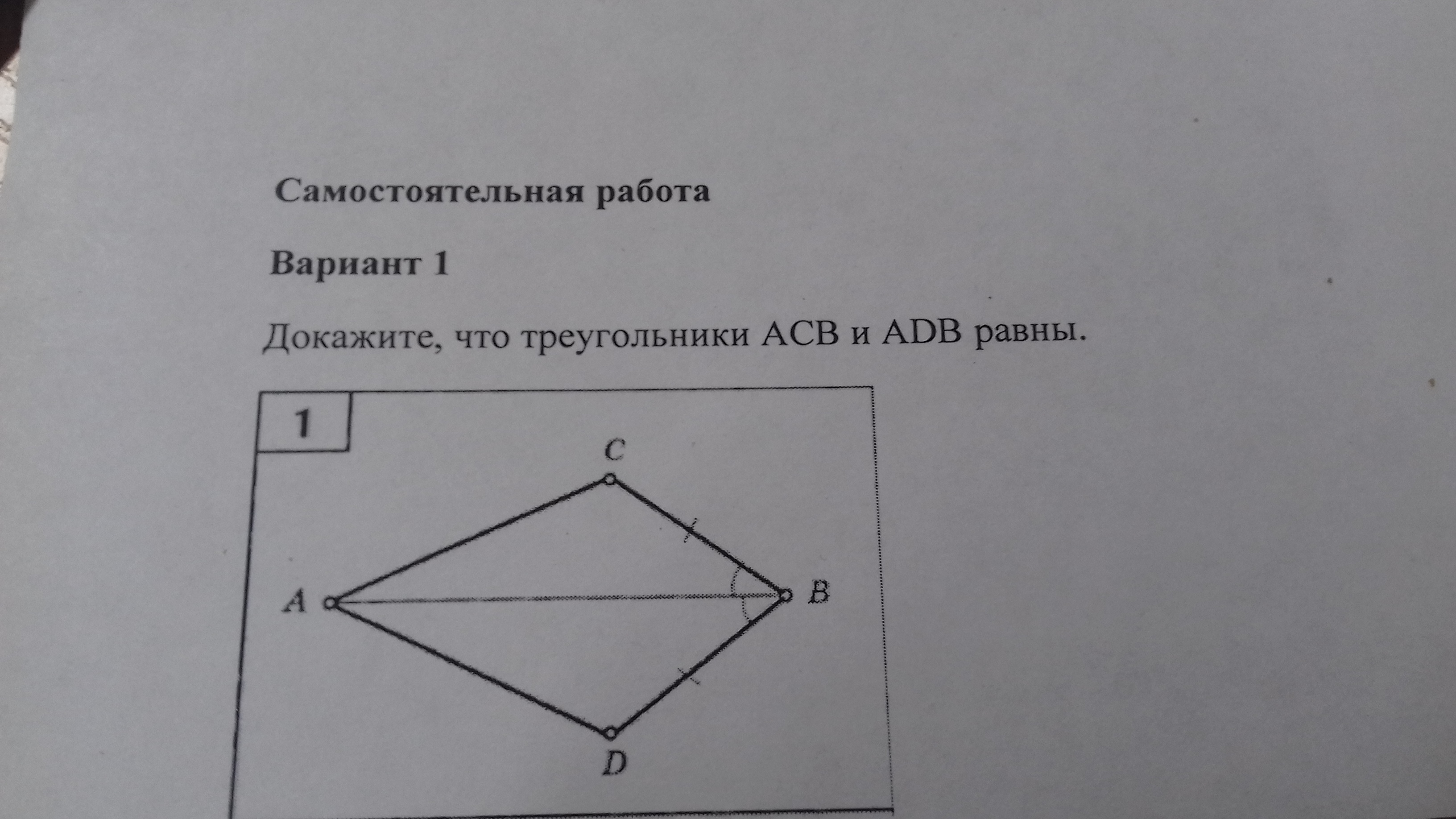 ав обшая по строению=>треугольник авс и авд по 2 сторонам и углам между них