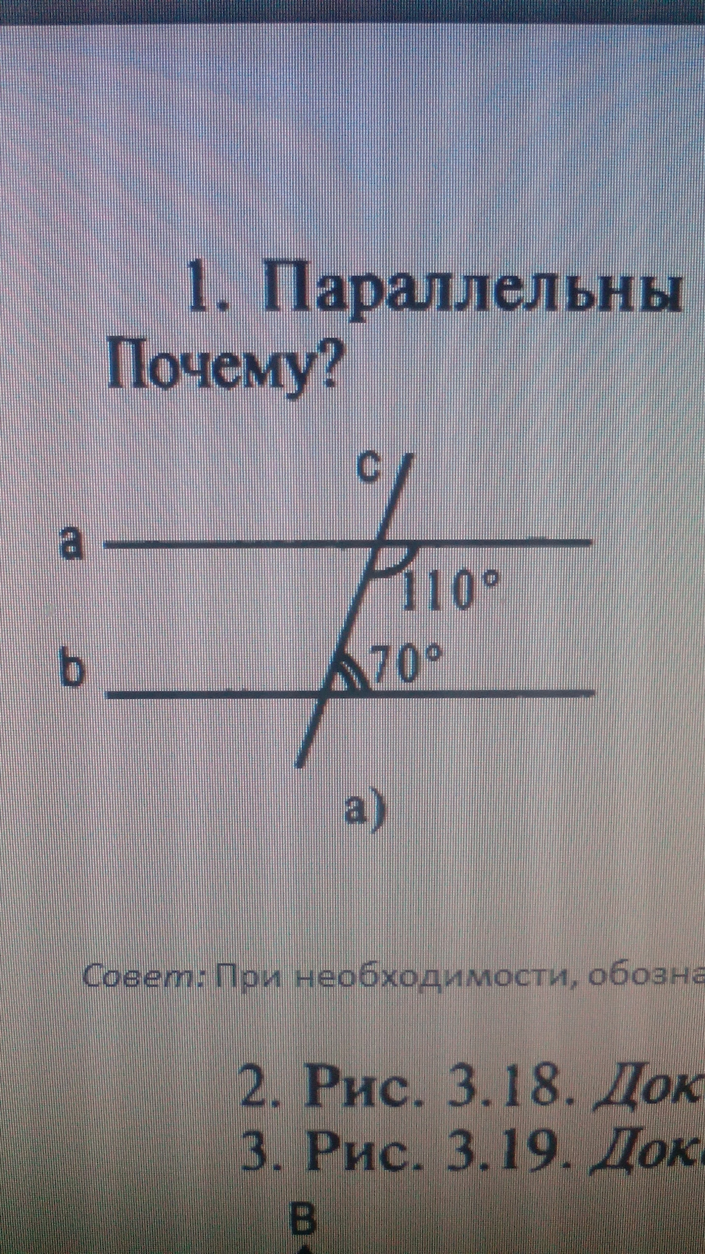 сумма односторонних углов=110+70=180° значит прямые являются параллельными по свойству параллельных прямых.
