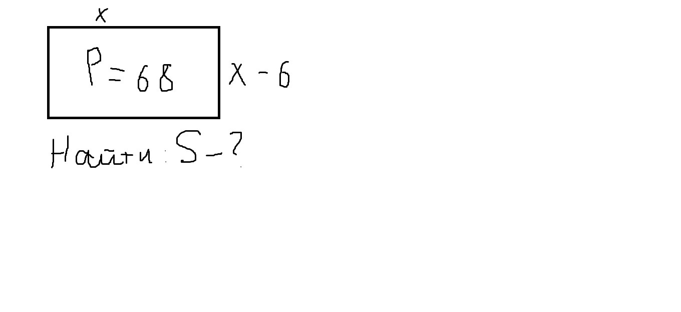 периметр прямоугольника равен 6 дм 8 см ,одна из его сторон на 1 дм 6 см меньше соседней стороны .найдите площадь прямоугольника. Решить уравнением и составить чертеж . заранее спасибо!!!!)