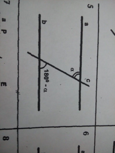есть правило: между параллельными прямыми через которые проведена линия существуют угли а и 180-а