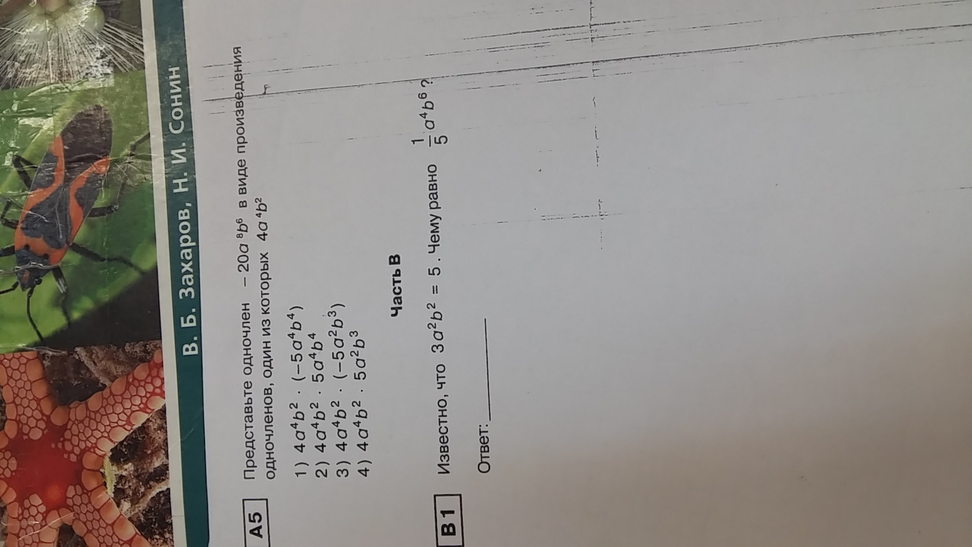 А5 1) 4а^4в^2*(-5а^4в^4)= -5*4*а^(4+4)в^(2+4)= -20а^8в^6; Ответ: 1)