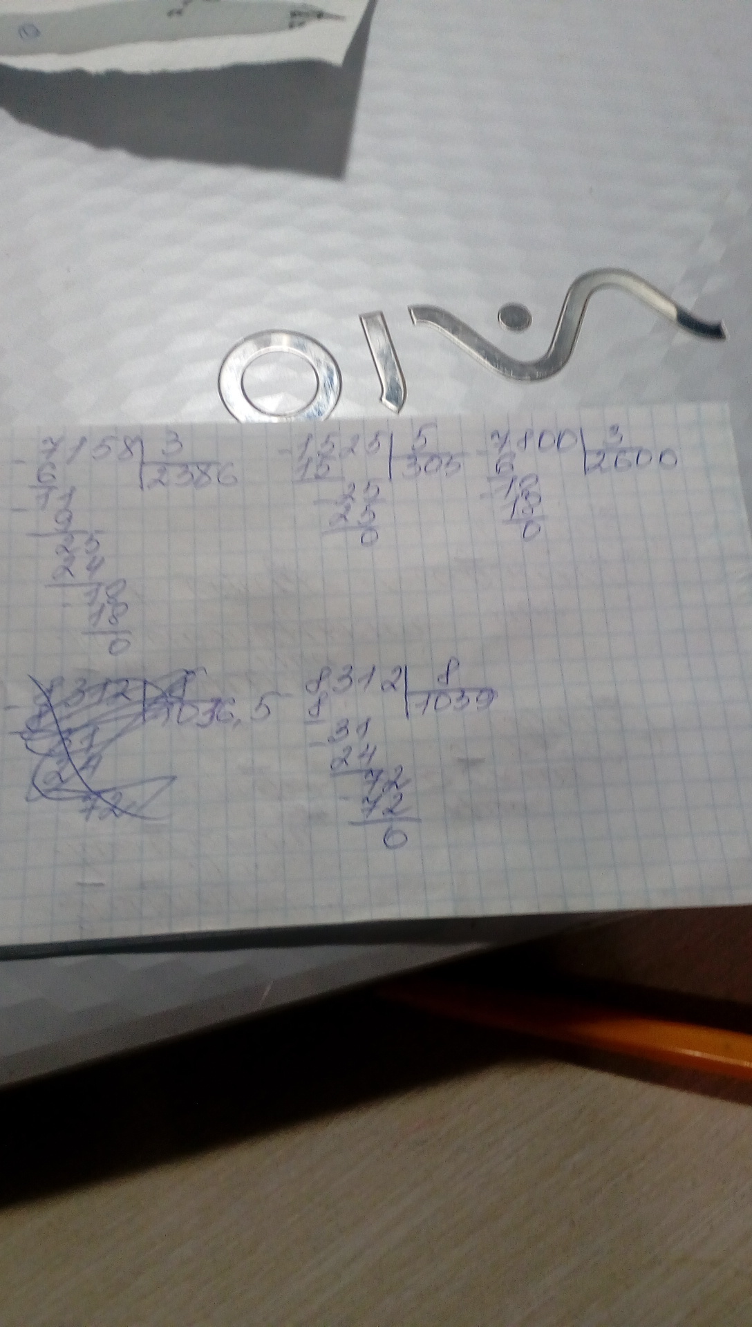 7158:3=2386 1525:5=305 7800:3=2600 8312:8=1039