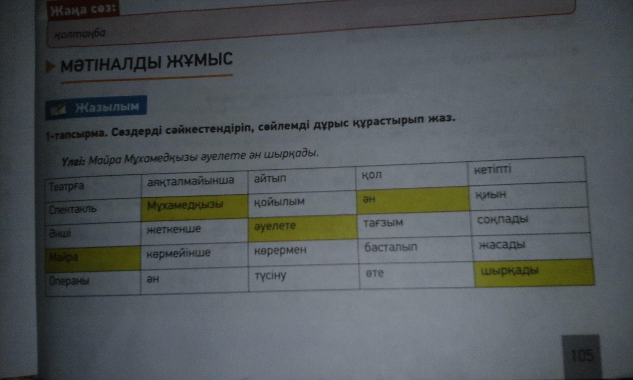 комектеcшi создербен сайкестендiрiп сойлемдi дурым курастырып жаз.-составь с этими словами правельно предложения.