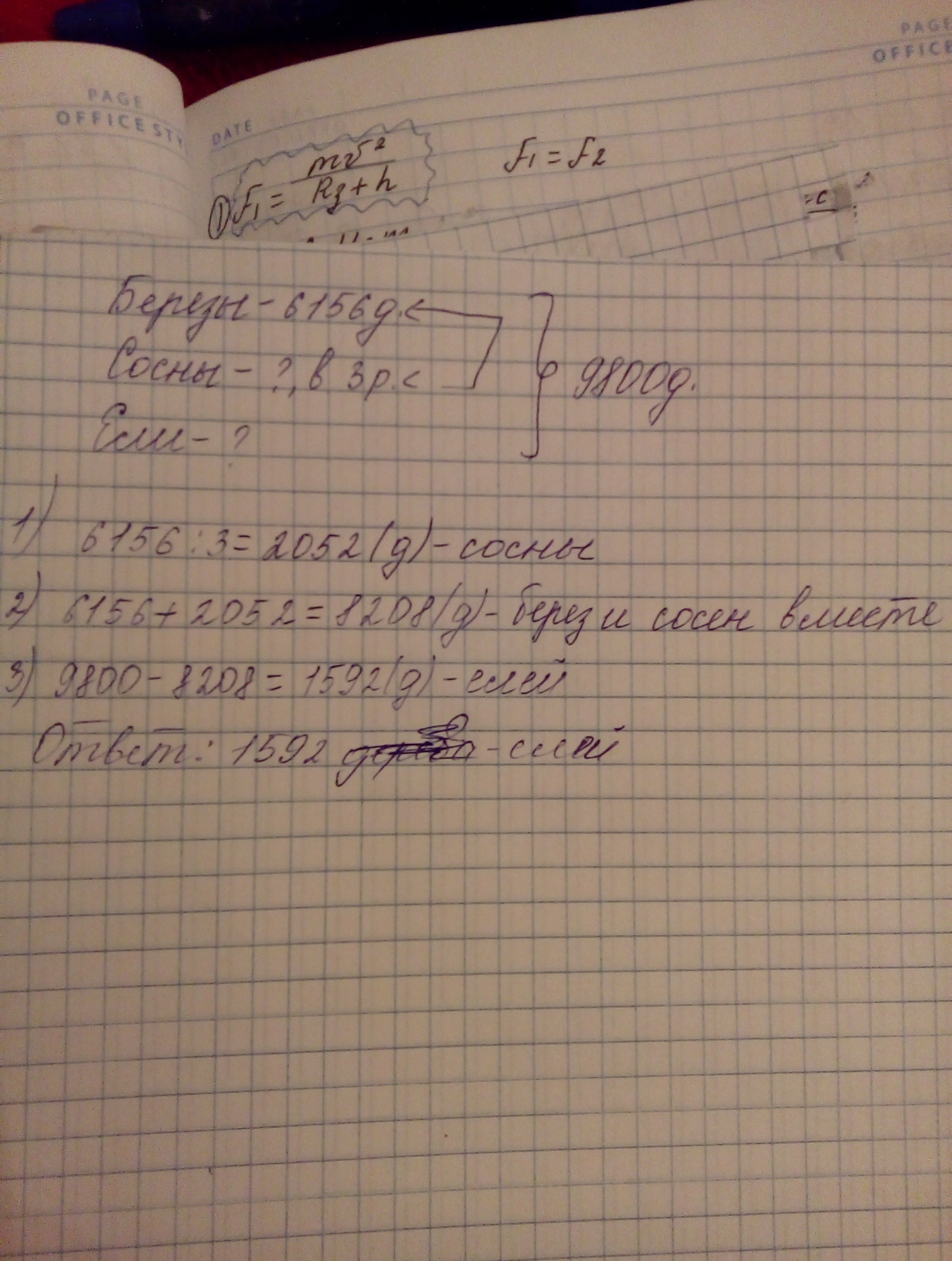 как решить задачу на Лесном участке 9800 деревьев из них 6156 берез и сосен в 3 раза меньше чем берез остальные ели сколько ели на Лесном участке