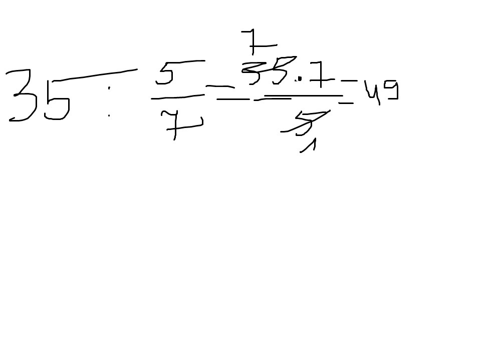 35: 5/7 = 35x7/1x5 = 245:5 = 49