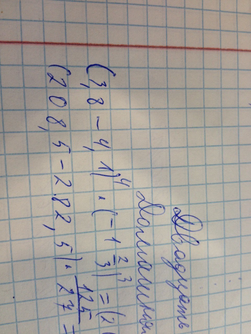 (3,8 - 4,1)⁴ × (-1 2/3)³= 0,0081 × (-8/27)=-3/1250=-0,0024
