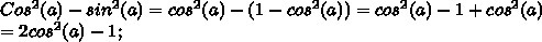 Если же в дано идет Cos^2(a)-sin^2(a) - то получим: