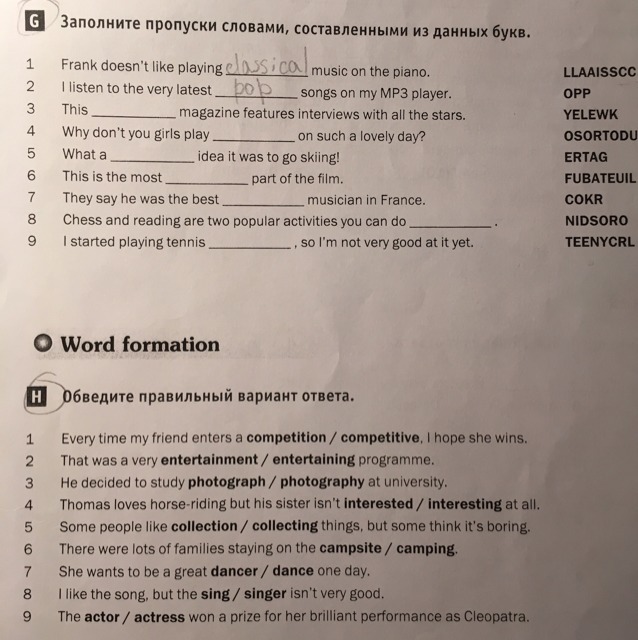В первом задании нужно правильно поставить слова, а во втором правильно обвести