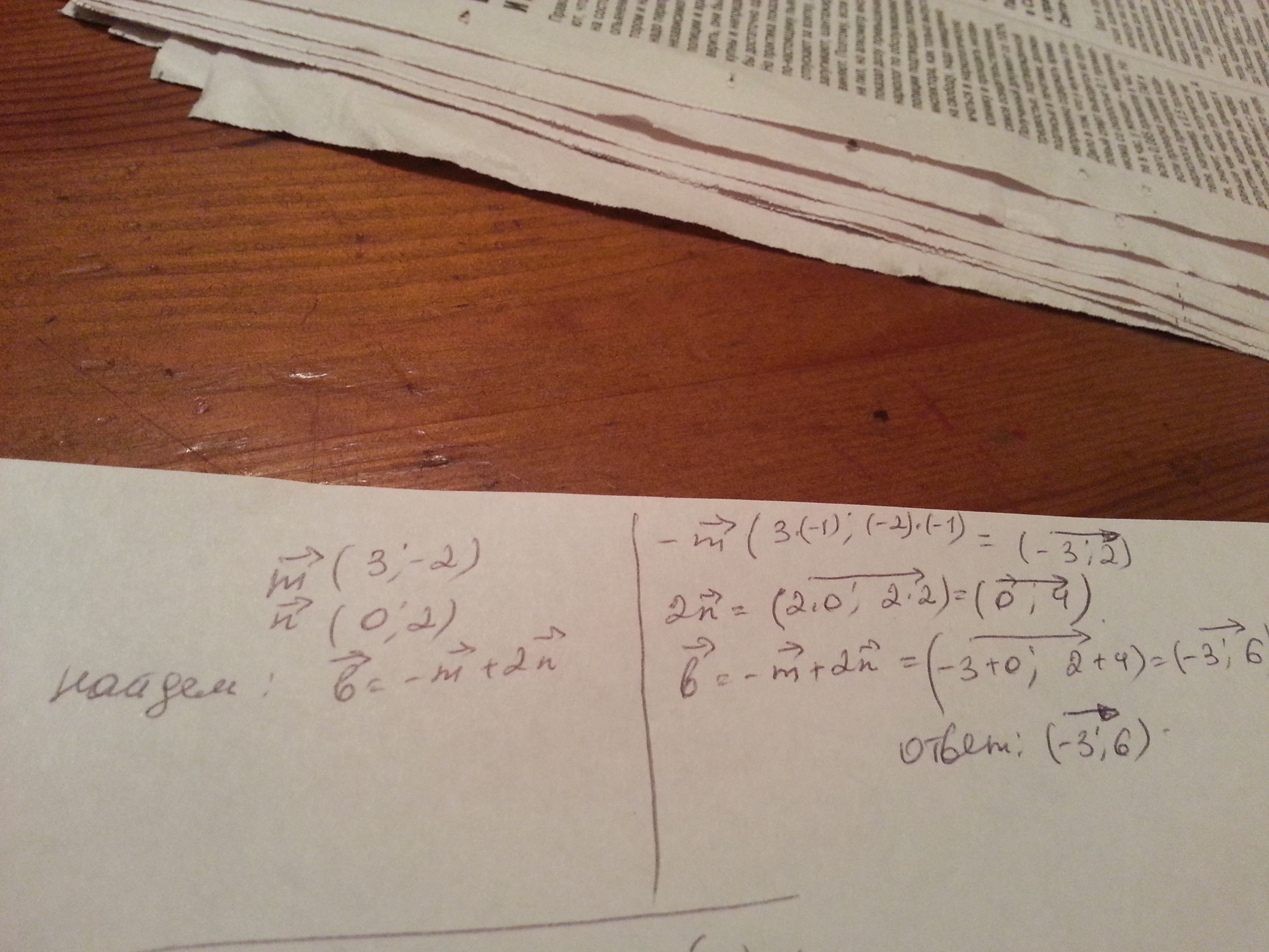 дано вектор m (3;-2) m (0;2) надо найти b= -m+2n
