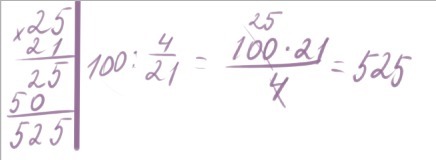 Там 100 и 4 сокращается так что там где 100 будет 25,а 4 уходит. И остается только 25*21.