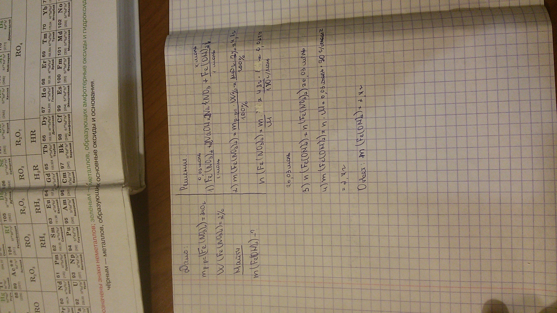 У 240г раствора Fe(No3)2 с массовой долей 2% добавили NaOH. Определите массу выпавшего осадка.