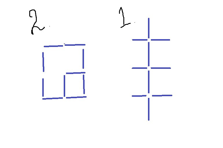 10 счетных палочек Выложи фигуру как на рисунке переложи 4 палочки так чтобы получилось 2 квадрата
