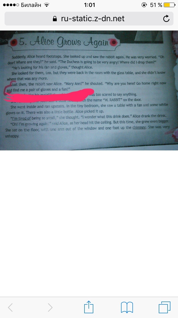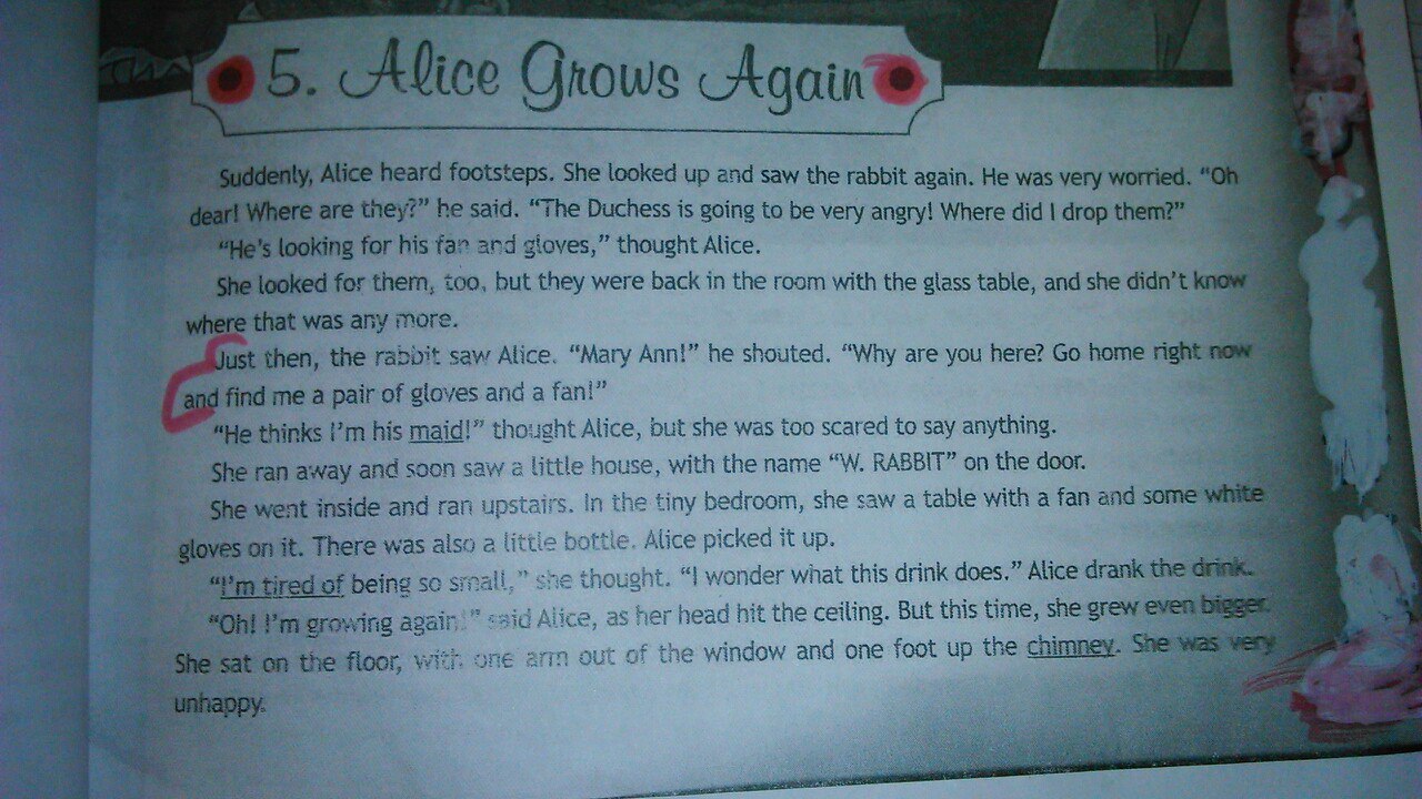 Джаст зен зе ребит соу Алис. Мерри Энн! Хи шутед. Вай а ю хеа? Гоу хом райт нау енд файнд ми э пеа оф главс енд а фэн!