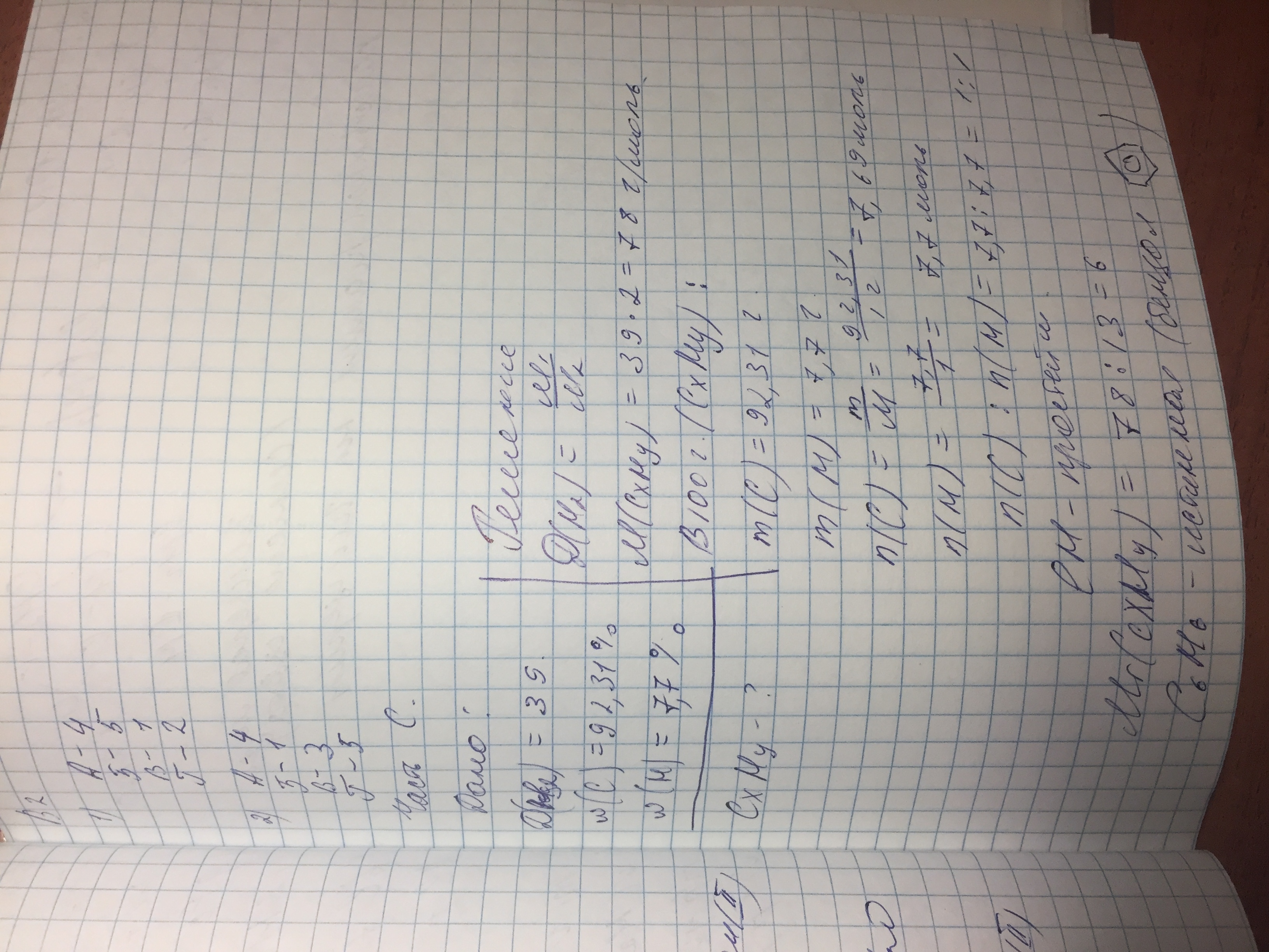 1. Решите задачу: Углеводород, плотность паров которого по водороду равна 39, содержит 92,31% углерода и 7,7% водорода. Найдите его молекулярную формулу.