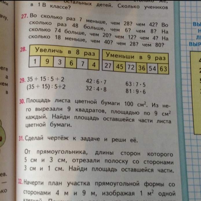 9*9=81, то есть чтобы найти площадь мы должны 100-81=19см^2