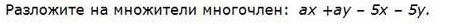 ax+ay-5x-5y=х(а+5)-у(а+5)=(а+5)(х-у)